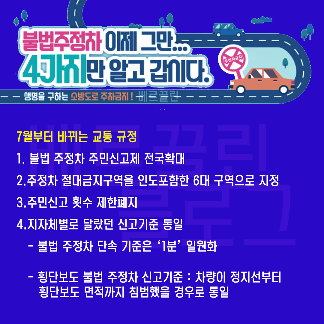 7월 불법주정차 주정차 제도 변경 주차 단속 조회 신고 포상금