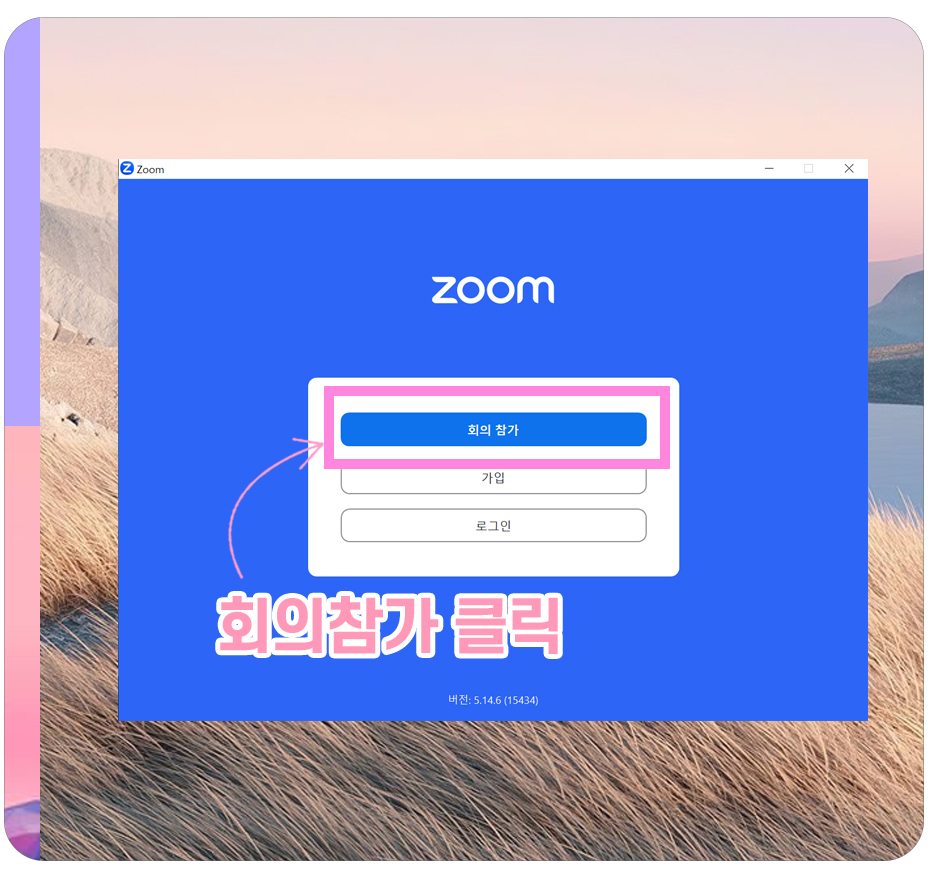 2-3) 줌을 실행하면 위와 같은 창이 팝업하게 되는데요. 회의참가를 클릭해줍니다.