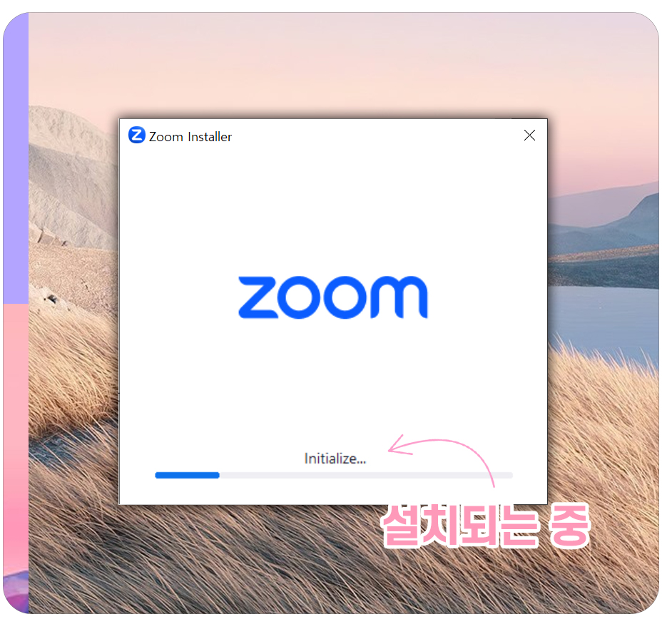1-4) Zoom 사이트에서 줌 응용프로그램 다운로드가 완료되면 이어서 줌프로그램 설치가 진행됩니다.