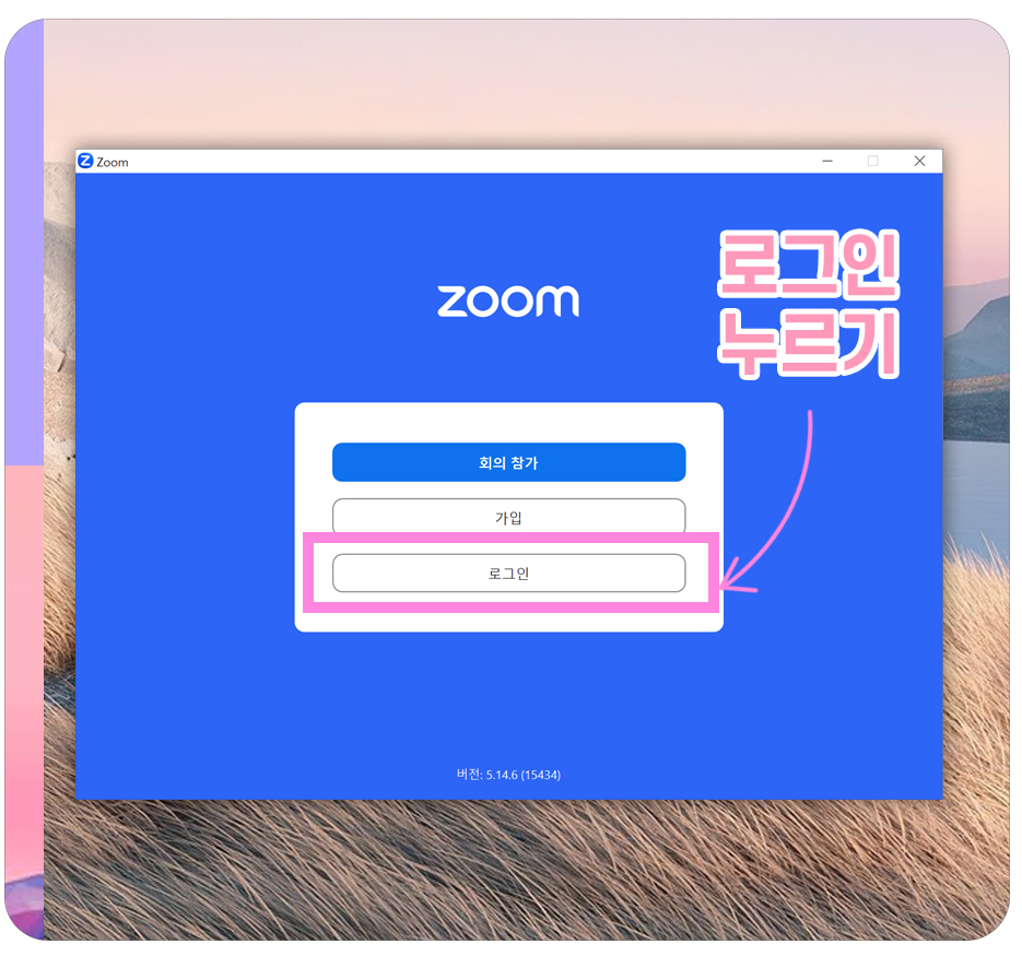 3-1) Zoom에 로그인을 하고 싶다면, 별도의 회원가입없이 구글계정으로 로그인이 가능합니다. 먼저 줌(Zoom) 실행화면에서 로그인을 눌러줍니다.